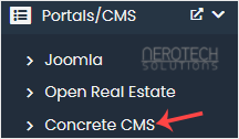 4. On the left side, locate the Portal/CMS category. Click on it and then on the Concrete CMS link that appears.
