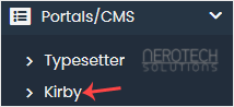 4. On the left side, locate the Portal/CMS category. Click on it and then on the Kirby link that appears.